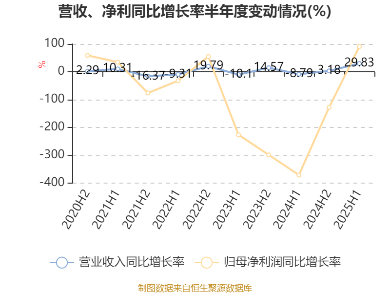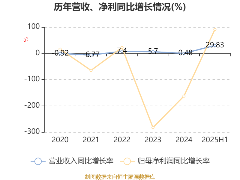 2025年上半年,公司平均净资产收益率为-0.25%,较上年同期上升2.19个百分点。