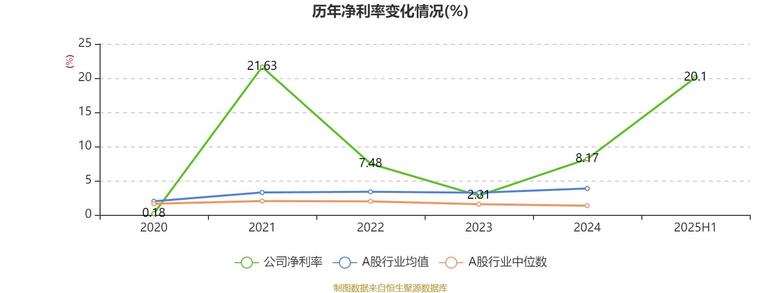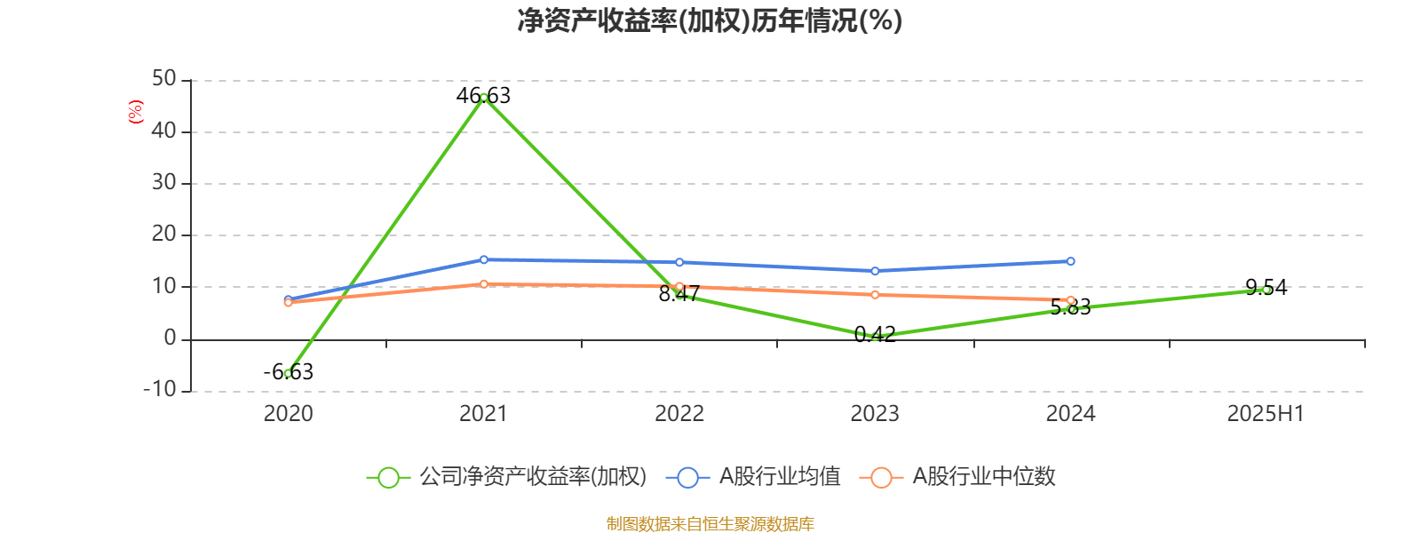 2025年上半年,公司平均净资产收益率为9.54%,较上年同期上升8.55个百分点。