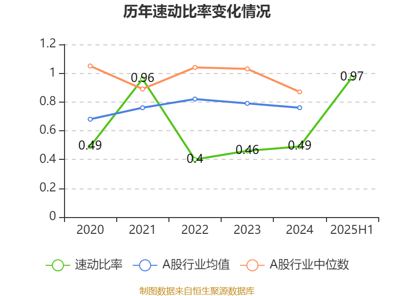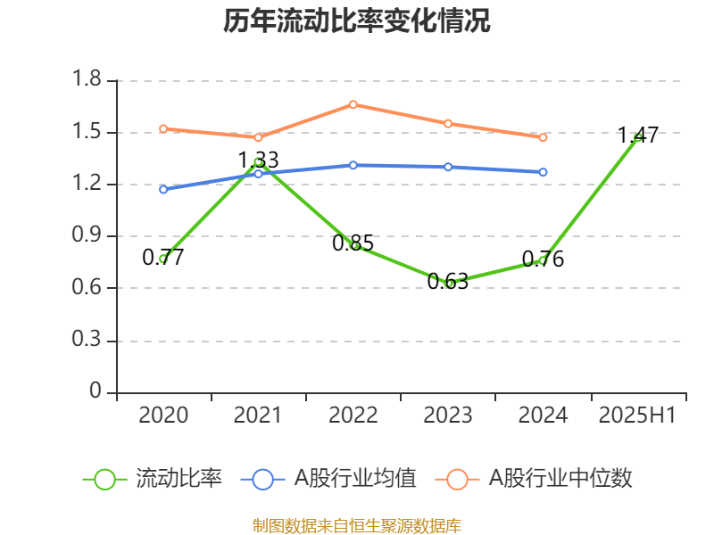 2025年上半年,公司流动比率为1.47,速动比率为0.97。