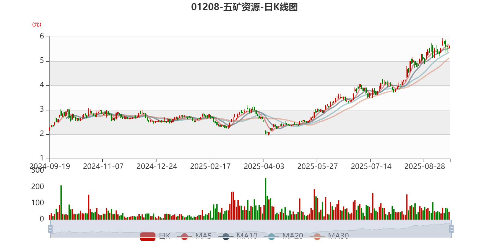 中证智能财讯五矿资源(01208)9月18日披露2025年中期报告。报告期内,公司实现营业收入28.17亿美元,同比增长46.86%;归母净利润3.4亿美元,同比增长1511.37%;经营活动产生的现金流量净额为11.85亿美元,同比增长129.96%;据报告显示,五矿资源基本每股收益为0.028美元,平均净资产收益率为9.54%。