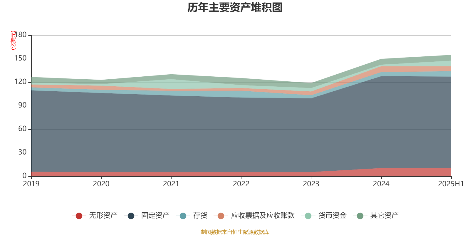 资产重大变化方面,截至2025年上半年,公司货币资金较上期末增加267.05%,占公司总资产比重上升3.28个百分点;固定资产较上期末减少0.41%,占公司总资产比重下降2.84个百分点;存货较上期末增加30.53%,占公司总资产比重上升0.93个百分点;应收票据及应收账款较上期末减少15.47%,占公司总资产比重下降0.91个百分点。