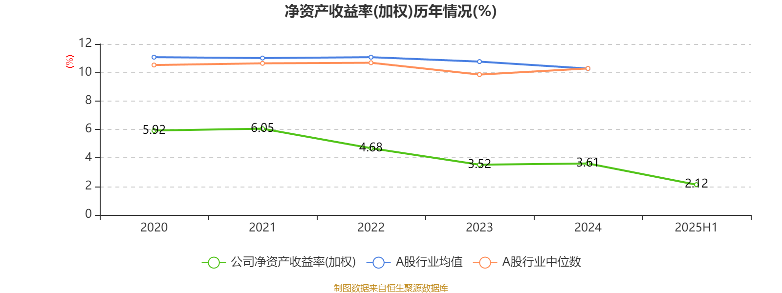 2025年上半年,公司平均净资产收益率为2.12%,较上年同期下降0.06个百分点。