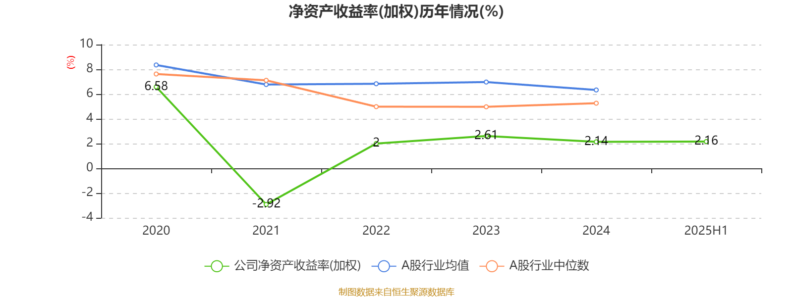 2025年上半年,公司平均净资产收益率为2.16%,较上年同期上升0.07个百分点。