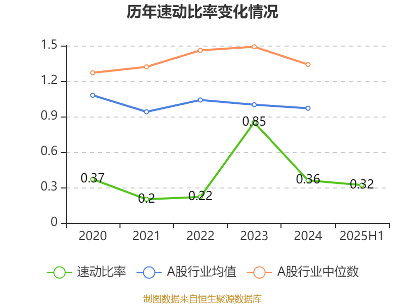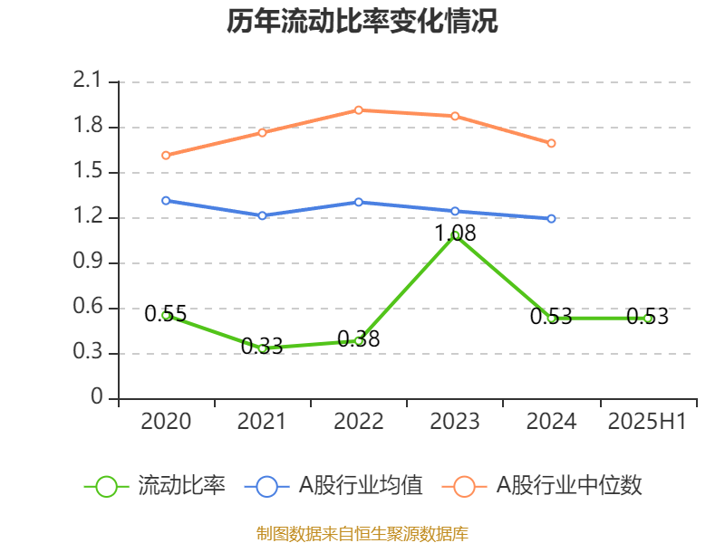 2025年上半年,公司流动比率为0.53,速动比率为0.32。