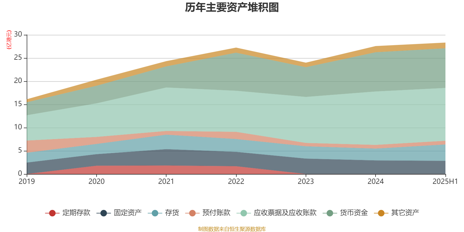 资产重大变化方面,截至2025年上半年,公司存货较上期末增加38.63%,占公司总资产比重上升3.23个百分点;应收票据及应收账款较上期末减少1.03%,占公司总资产比重下降1.53个百分点;固定资产较上期末减少3.14%,占公司总资产比重下降0.61个百分点;货币资金较上期末增加1.18%,占公司总资产比重下降0.46个百分点。