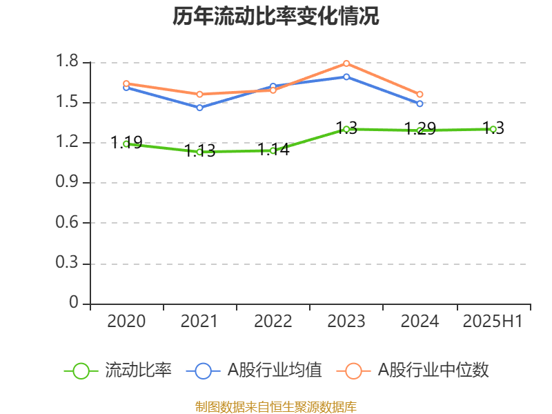 2025年上半年,公司流动比率为1.30,速动比率为1.12。