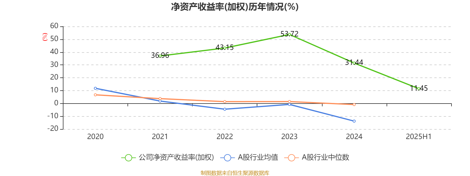 2025年上半年,公司平均净资产收益率为11.45%,较上年同期下降10.99个百分点。