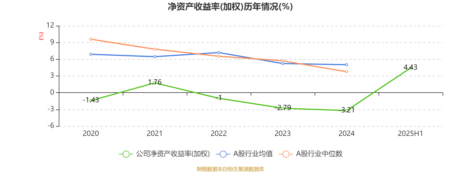 2025年上半年,公司平均净资产收益率为4.43%,较上年同期上升7.73个百分点。