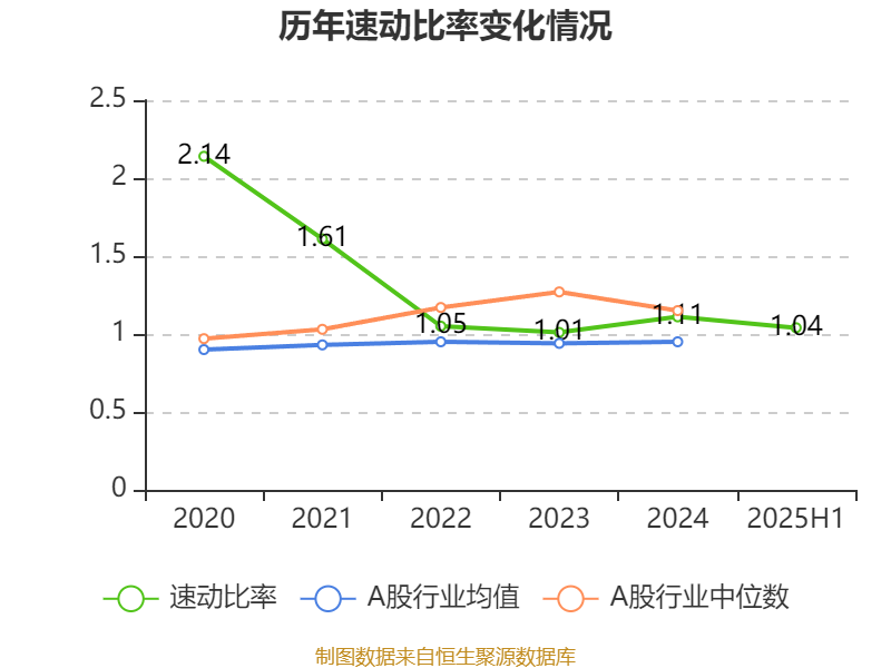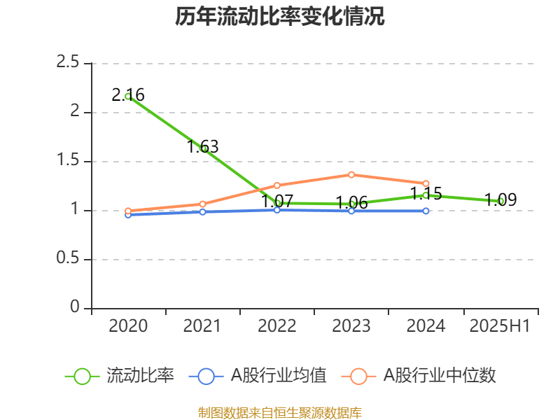 2025年上半年,公司流动比率为1.09,速动比率为1.04。