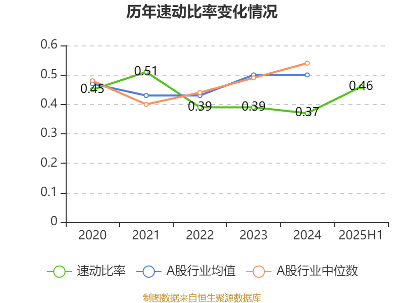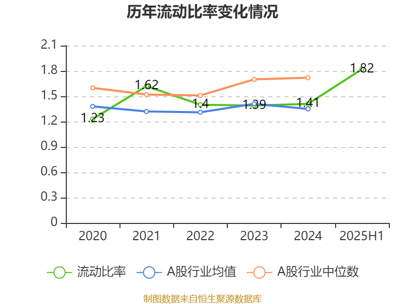 2025年上半年,公司流动比率为1.82,速动比率为0.46。