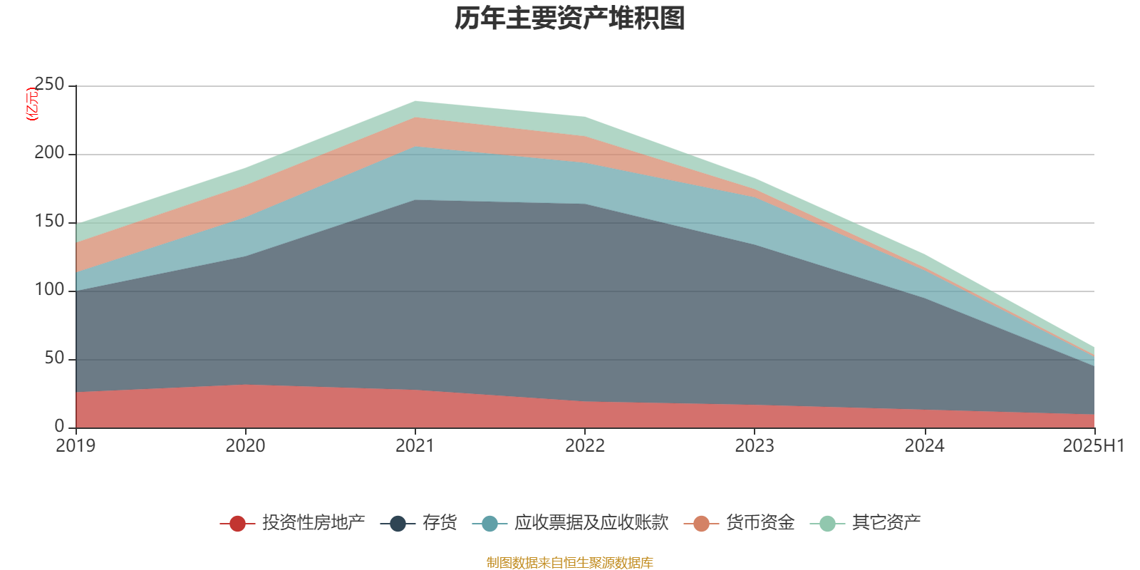 资产重大变化方面,截至2025年上半年,公司投资性房地产较上期末减少27.73%,占公司总资产比重上升5.79个百分点;应收票据及应收账款较上期末减少66.03%,占公司总资产比重下降4.26个百分点;存货较上期末减少56.55%,占公司总资产比重下降3.95个百分点;其他流动资产较上期末减少26.3%,占公司总资产比重上升1.58个百分点。
