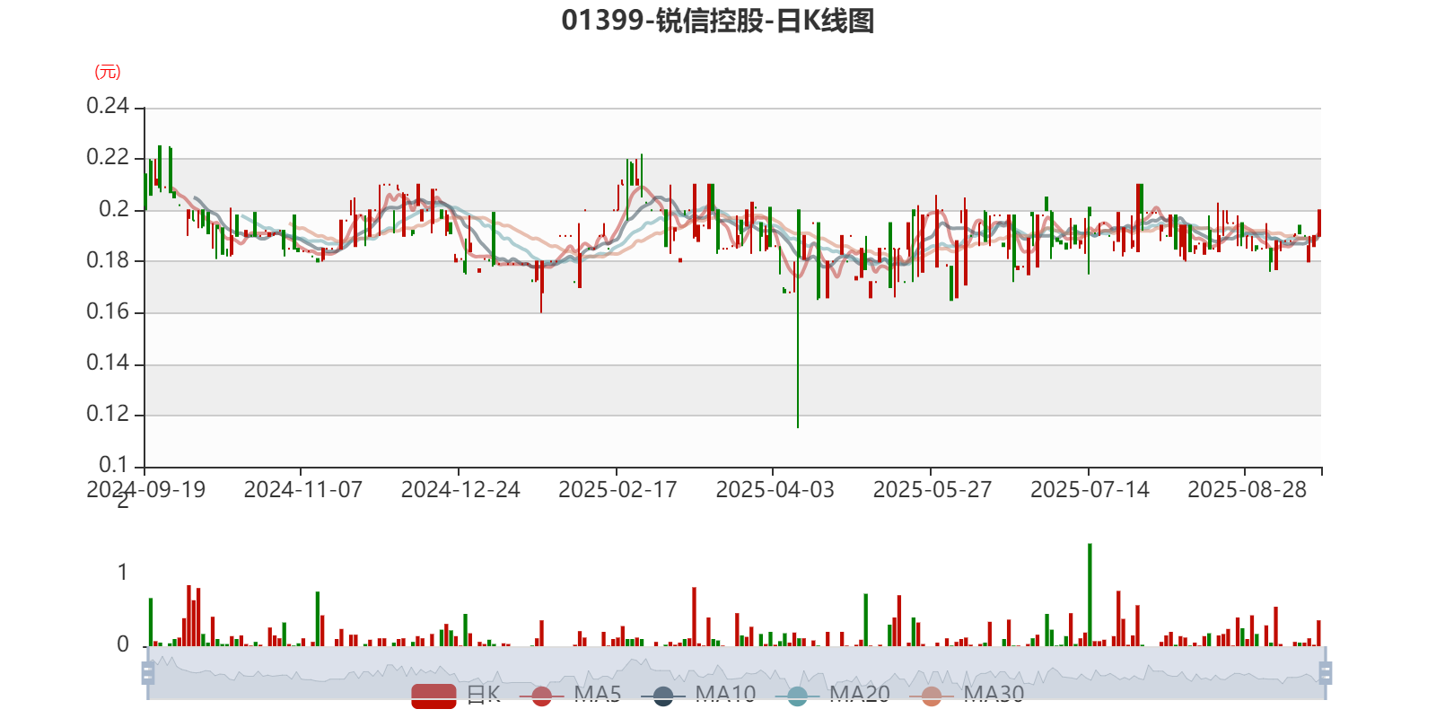 以9月18日收盘价计算,锐信控股目前市净率(TTM)约0.19倍,市销率(TTM)约0.04倍。
