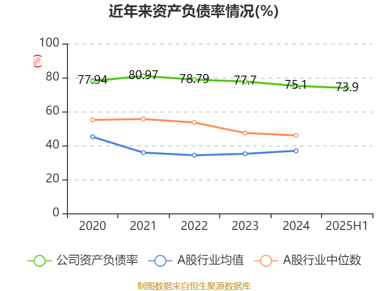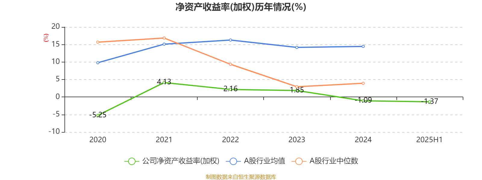 2025年上半年,公司平均净资产收益率为-1.37%,较上年同期下降1.87个百分点。