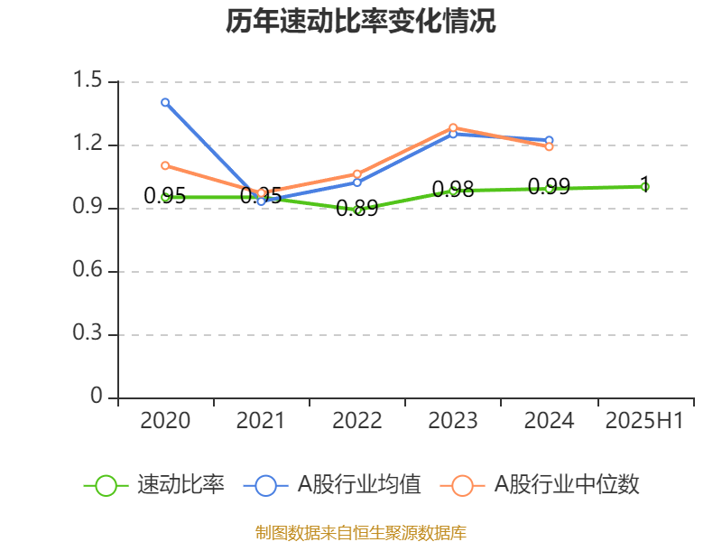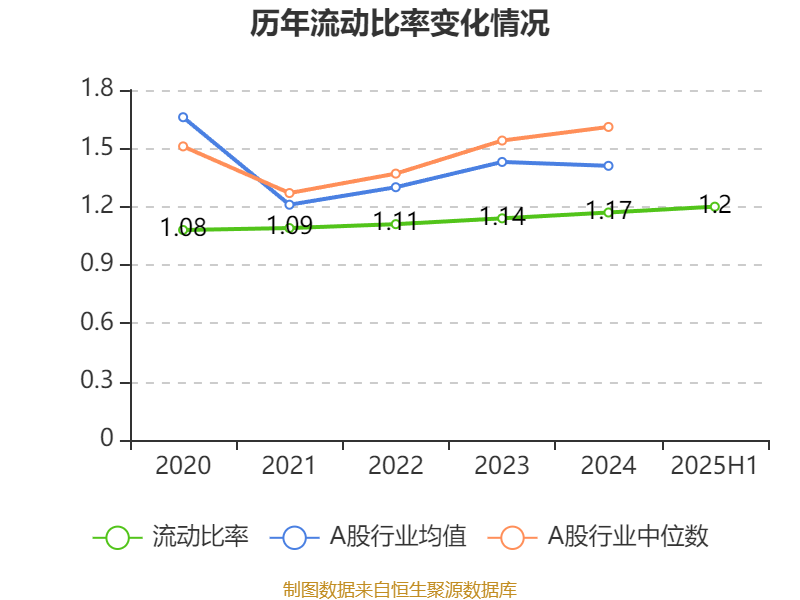 2025年上半年,公司流动比率为1.20,速动比率为1。