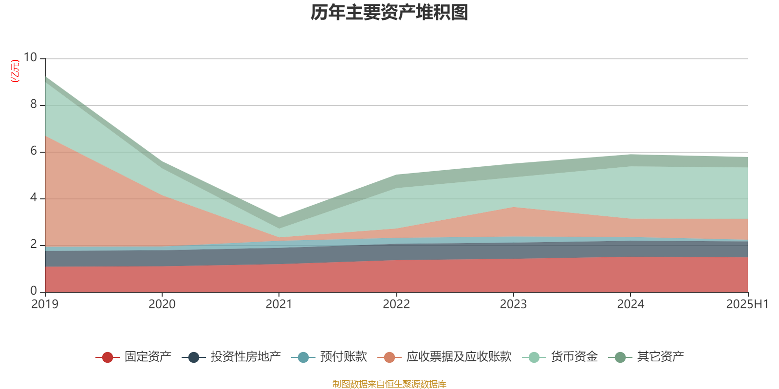 资产重大变化方面,截至2025年上半年,公司应收票据及应收账款较上期末增加14.28%,占公司总资产比重上升2.21个百分点;预付账款较上期末减少55.91%,占公司总资产比重下降1.49个百分点;合同资产较上期末减少49.57%,占公司总资产比重下降0.87个百分点;投资性房地产较上期末没有变化,占公司总资产比重上升0.23个百分点。