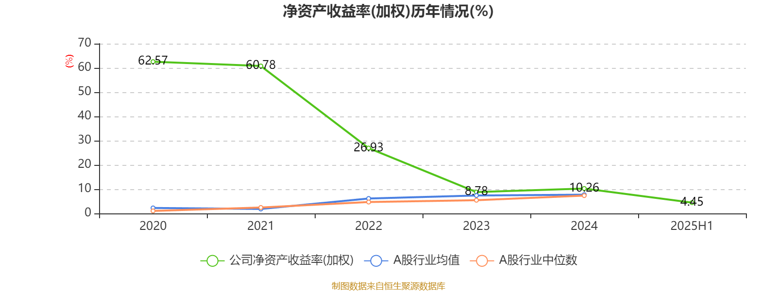 2025年上半年,公司平均净资产收益率为4.45%,较上年同期下降0.94个百分点。