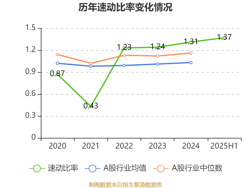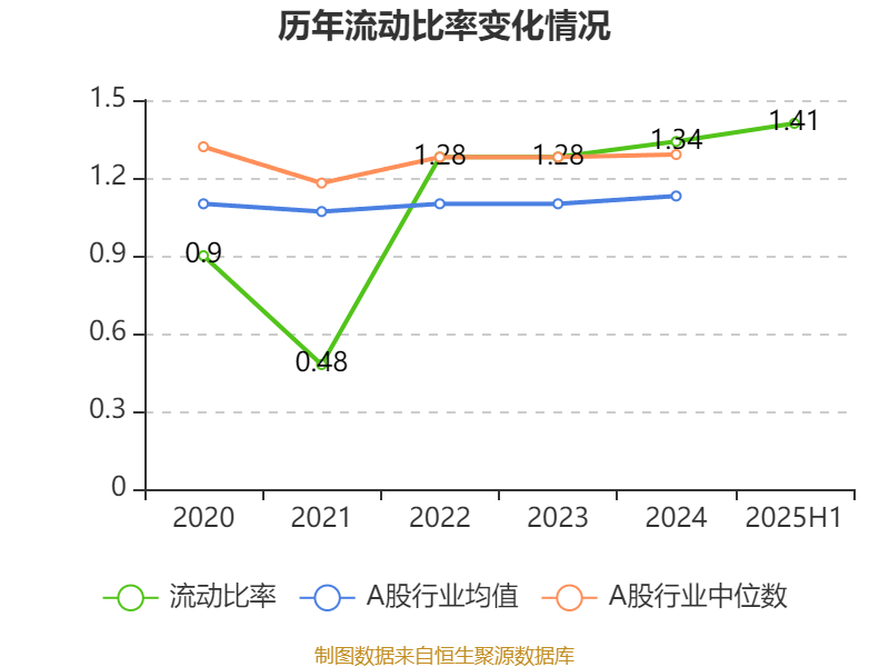 2025年上半年,公司流动比率为1.41,速动比率为1.37。
