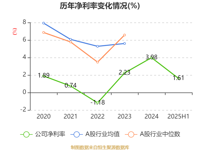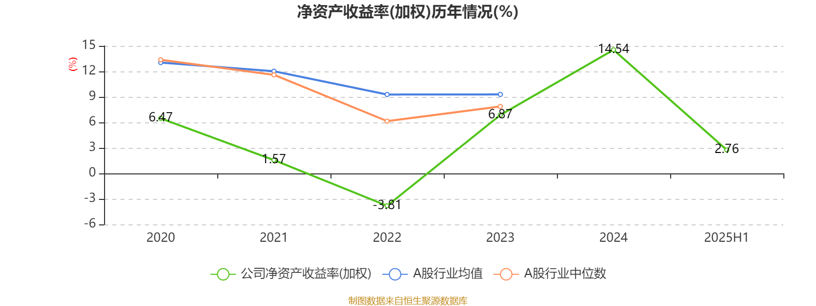 2025年上半年,公司平均净资产收益率为2.76%,较上年同期下降3.87个百分点。