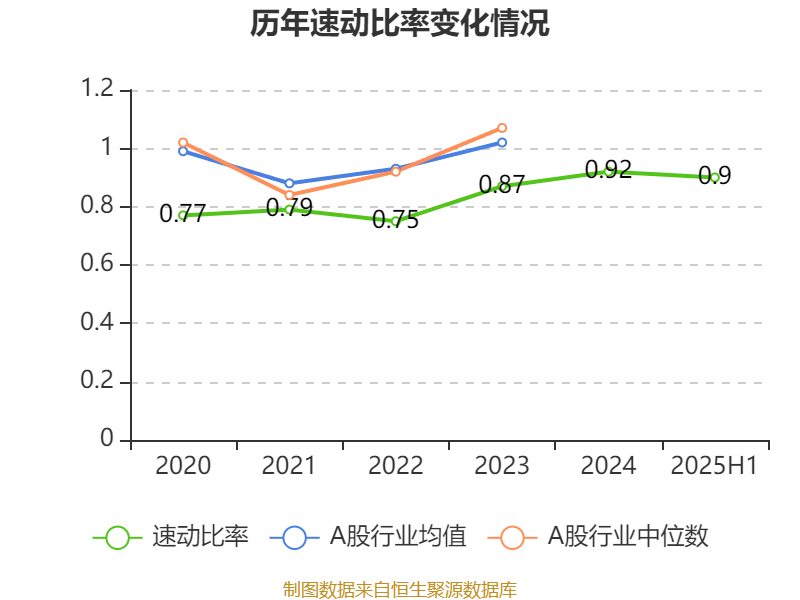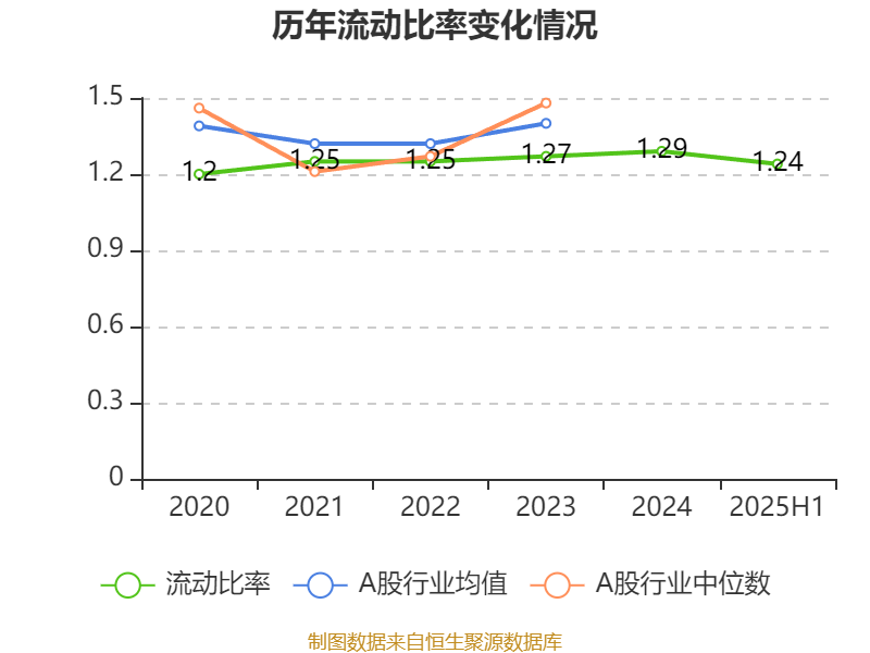 2025年上半年,公司流动比率为1.24,速动比率为0.9。