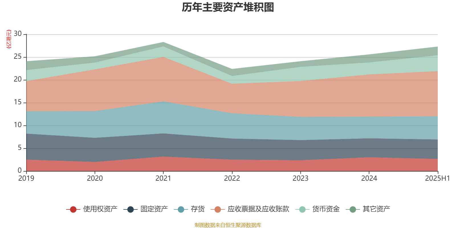 负债重大变化方面,截至2025年上半年,公司短期借款较上期末增加44.88%,占公司总资产比重上升5.62个百分点;租赁负债较上期末减少13.53%,占公司总资产比重下降1.86个百分点;应付票据及应付账款较上期末增加3.74%,占公司总资产比重下降0.83个百分点;应交税费较上期末减少48.05%,占公司总资产比重下降0.32个百分点。