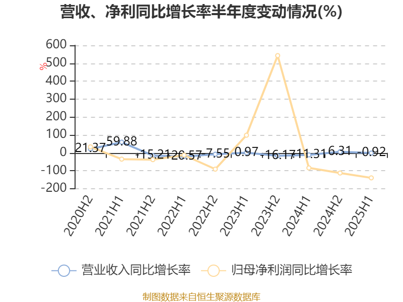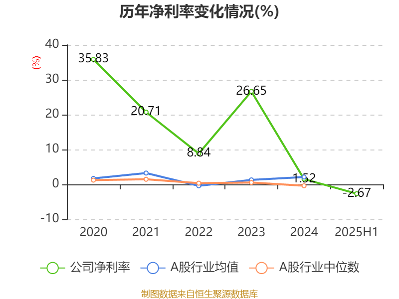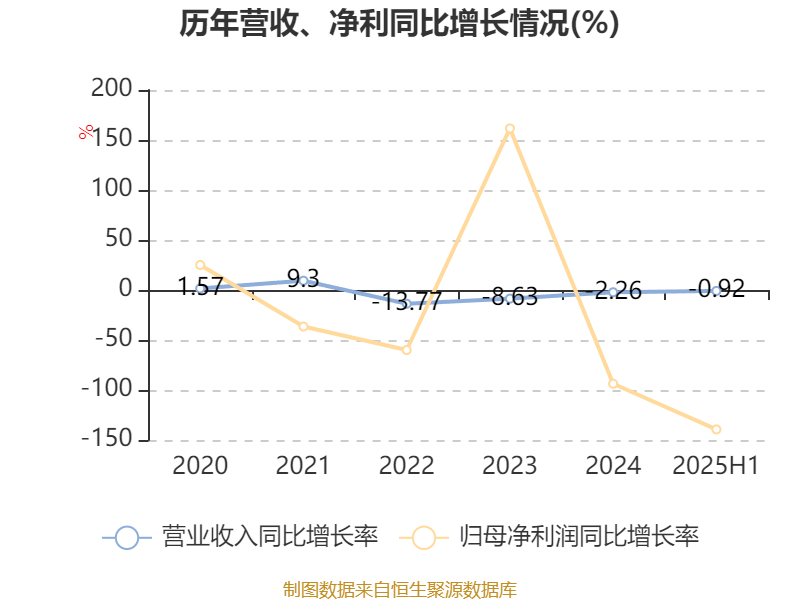 2025年上半年,公司平均净资产收益率为-0.33%,较上年同期下降1.17个百分点。