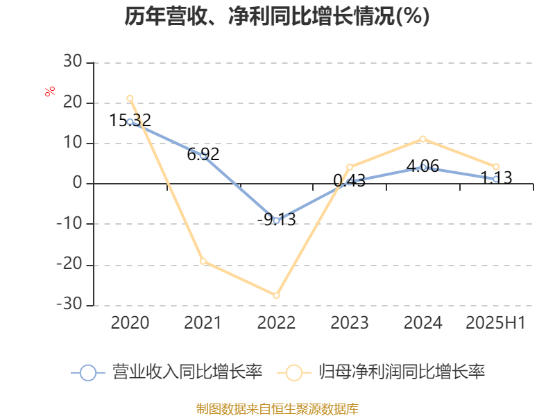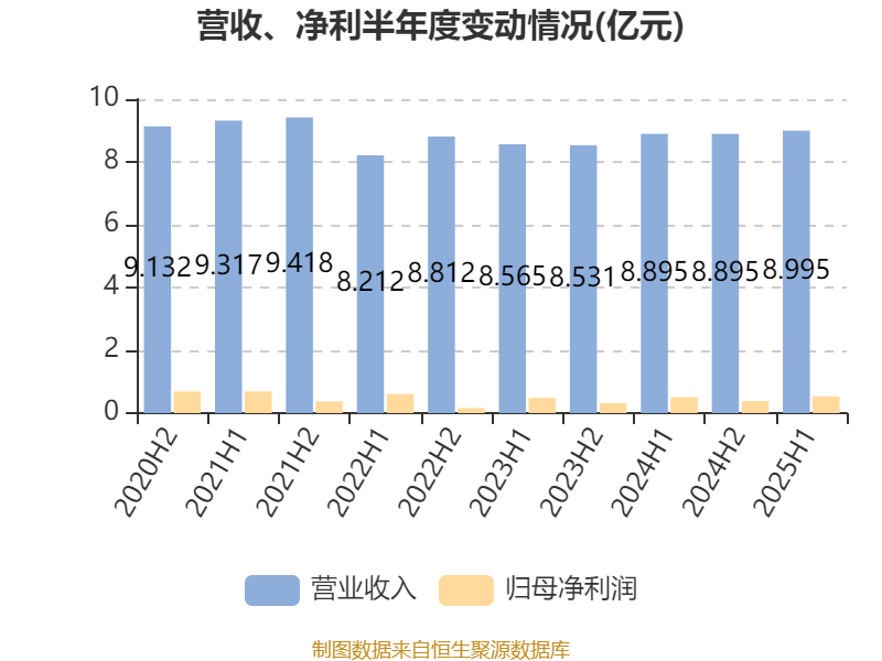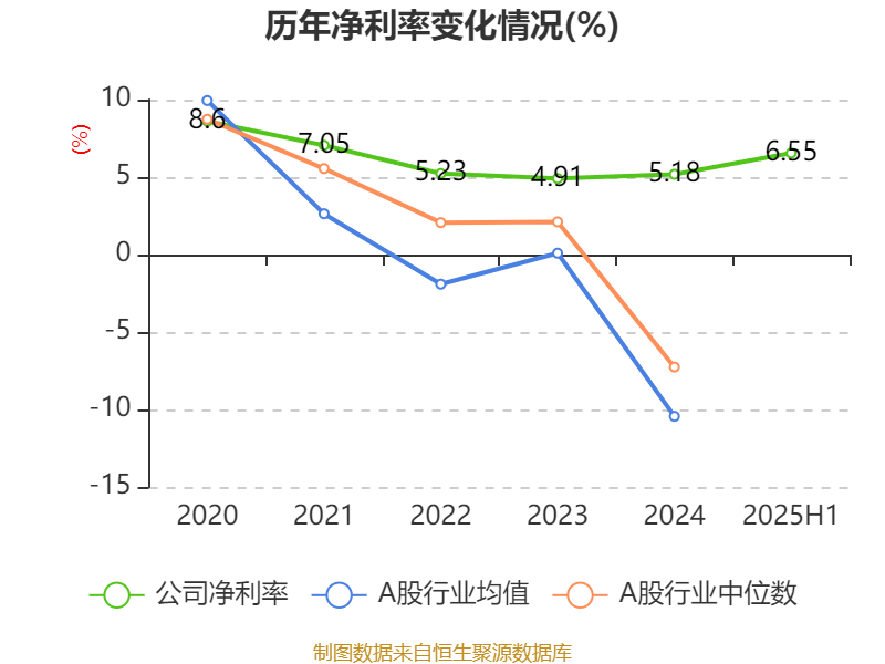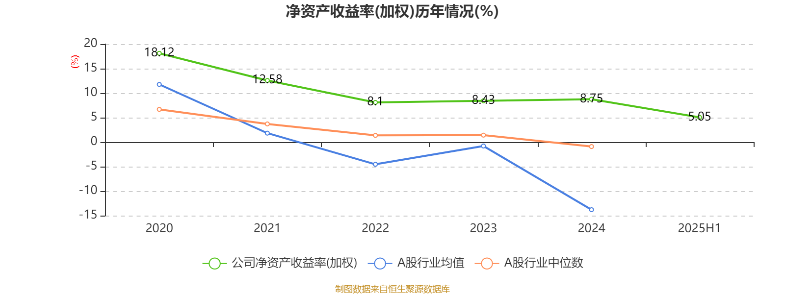 2025年上半年,公司平均净资产收益率为5.05%,较上年同期下降0.08个百分点。