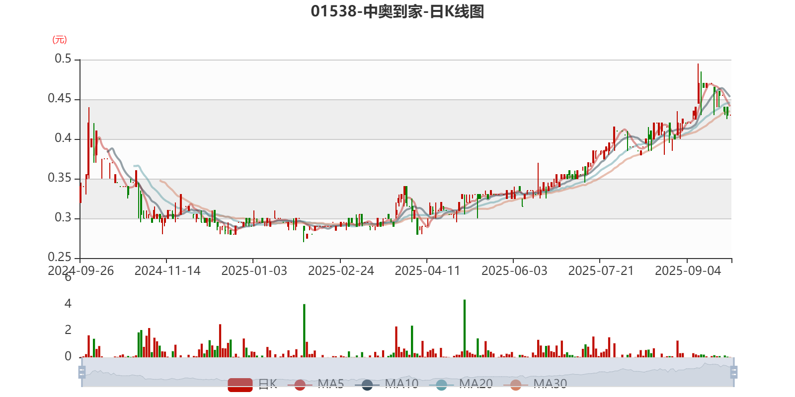 以9月26日收盘价计算,中奥到家目前市盈率(TTM)约3.68倍,市净率(TTM)约0.31倍,市销率(TTM)约0.19倍。