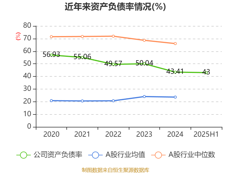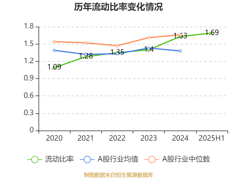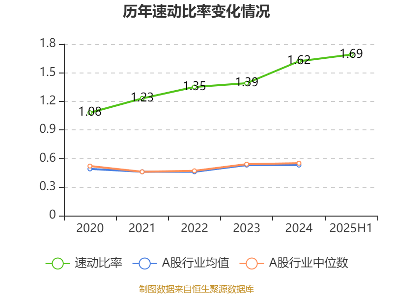2025年上半年,公司流动比率为1.69,速动比率为1.69。