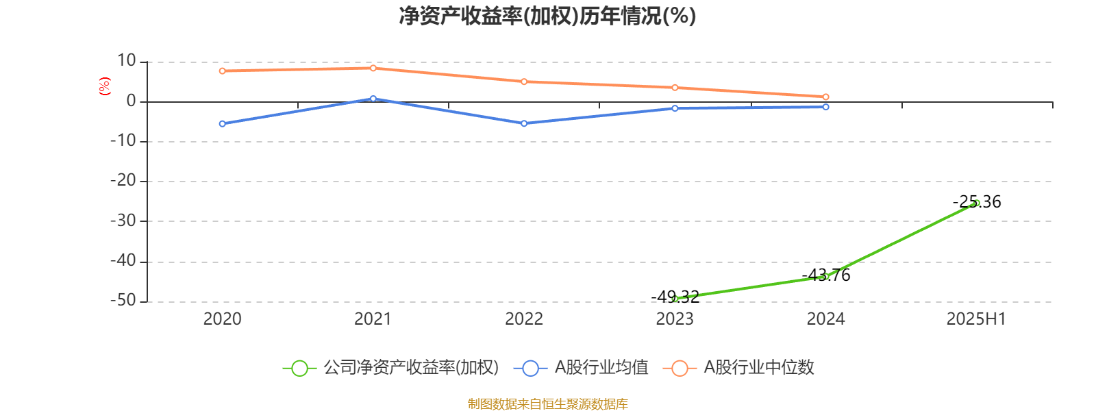 2025年上半年,公司平均净资产收益率为-25.36%,较上年同期下降0.87个百分点。