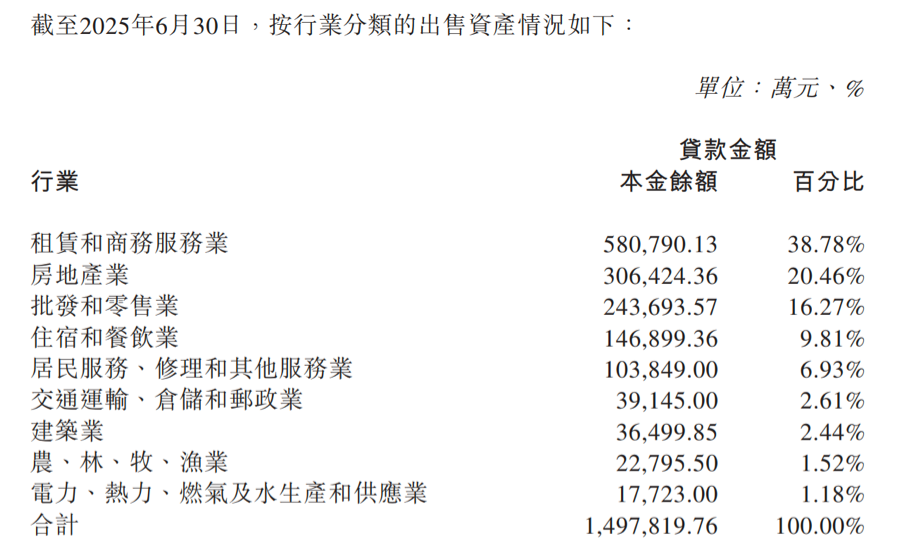 广州农商行公告中拟出售信贷资产的行业分布情况
