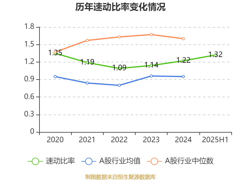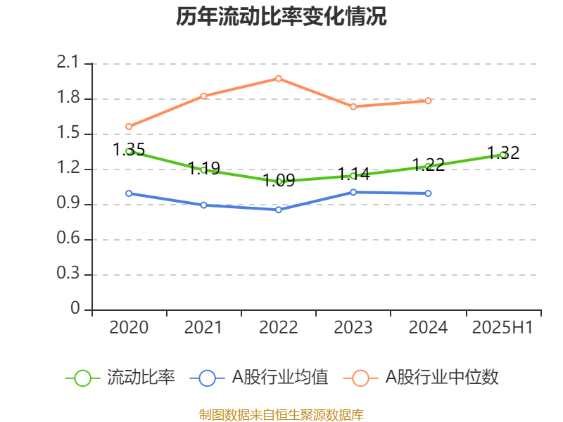 2025年上半年,公司流动比率为1.32,速动比率为1.32。