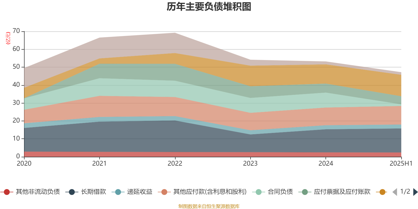 负债重大变化方面,截至2025年上半年,公司合同负债较上期末减少88.74%,占公司总资产比重下降6.54个百分点;短期借款较上期末增加11.38%,占公司总资产比重上升1.63个百分点;长期借款较上期末增加4.03%,占公司总资产比重上升1.07个百分点;其他应付款(含利息和股利)较上期末增加4.81%,占公司总资产比重上升0.89个百分点。