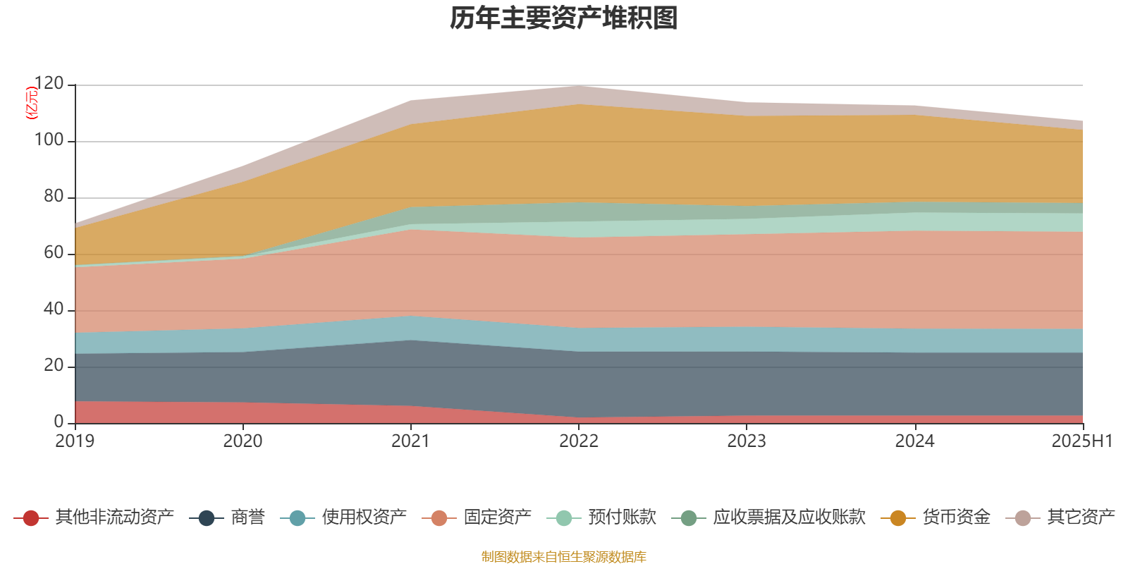 资产重大变化方面,截至2025年上半年,公司货币资金较上期末减少15.71%,占公司总资产比重下降3.12个百分点;固定资产较上期末减少0.77%,占公司总资产比重上升1.32个百分点;商誉较上期末没有变化,占公司总资产比重上升1.01个百分点;预付账款较上期末增加1.5%,占公司总资产比重上升0.38个百分点。