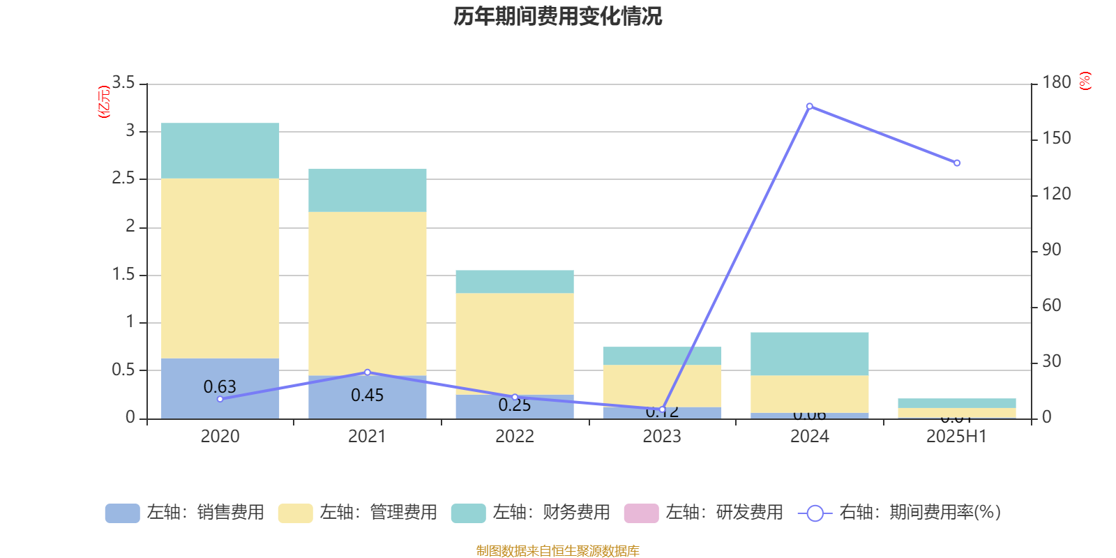 2025年上半年,公司平均净资产收益率为-2.3%,较上年同期上升3.4个百分点。