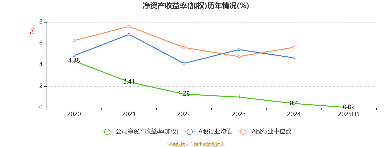 2025年上半年,公司平均净资产收益率为0.02%,较上年同期下降0.47个百分点。