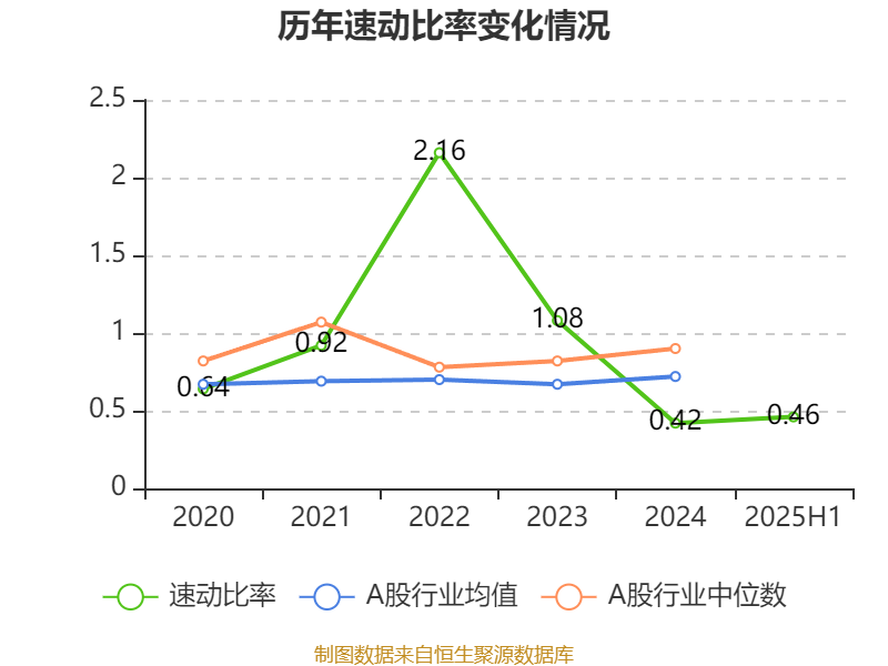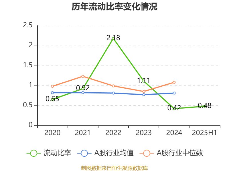 2025年上半年,公司流动比率为0.48,速动比率为0.46。