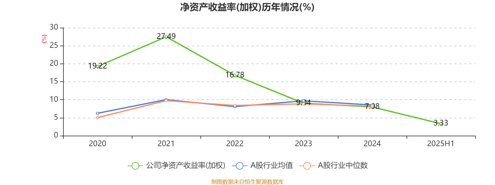 2025年上半年,公司平均净资产收益率为3.33%,较上年同期下降0.88个百分点。