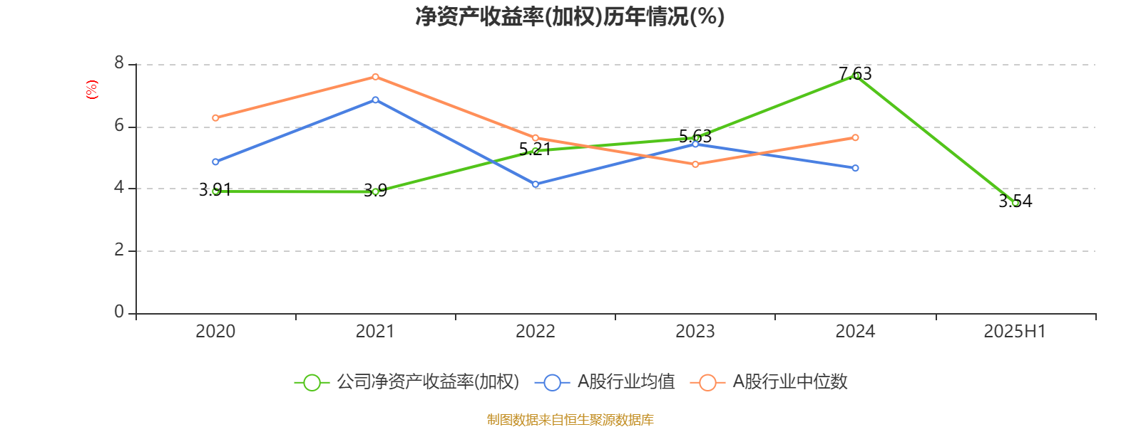 2025年上半年,公司平均净资产收益率为3.54%,较上年同期上升0.68个百分点。