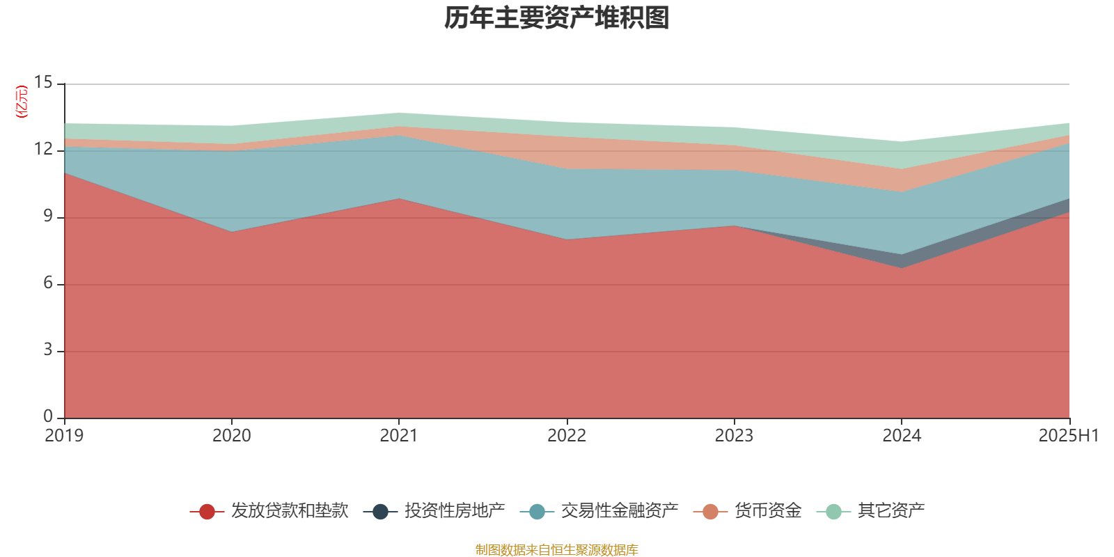 资产重大变化方面,截至2025年上半年,公司发放贷款和垫款较上期末增加37.65%,占公司总资产比重上升15.66个百分点;货币资金较上期末减少64.69%,占公司总资产比重下降5.56个百分点;买入返售金融资产较上期末减少100%,占公司总资产比重下降4.85个百分点;交易性金融资产较上期末减少11.42%,占公司总资产比重下降3.85个百分点。