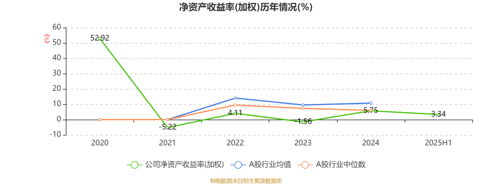 2025年上半年,公司平均净资产收益率为3.34%,较上年同期上升0.63个百分点。