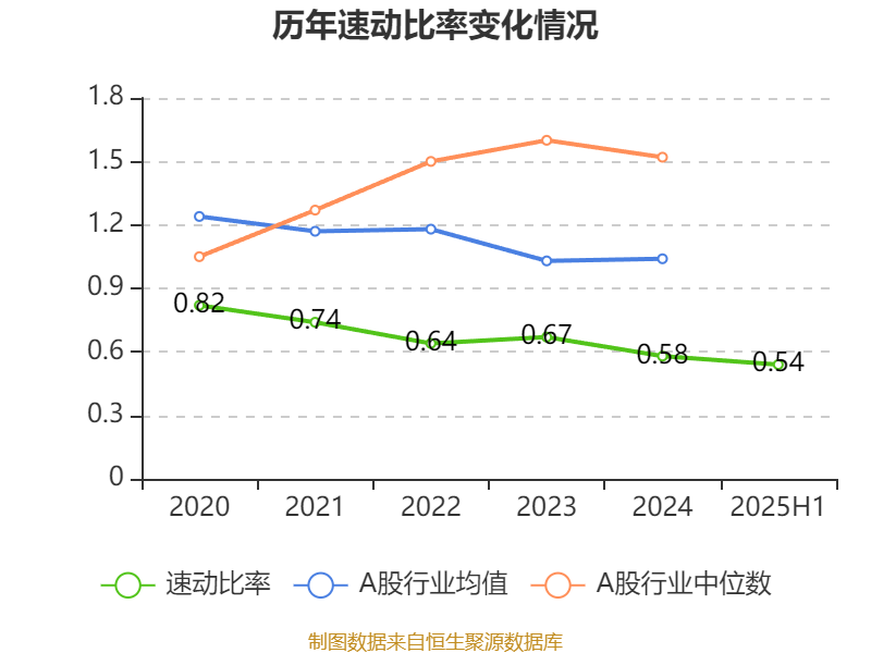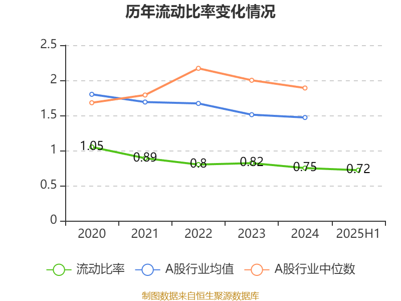 2025年上半年,公司流动比率为0.72,速动比率为0.54。