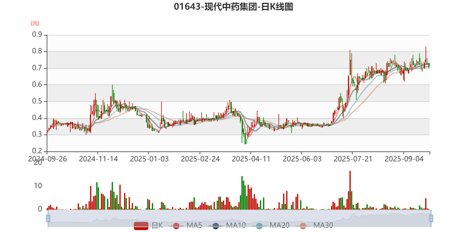 现代中药集团:2025年中期盈利245.3万元 同比扭亏