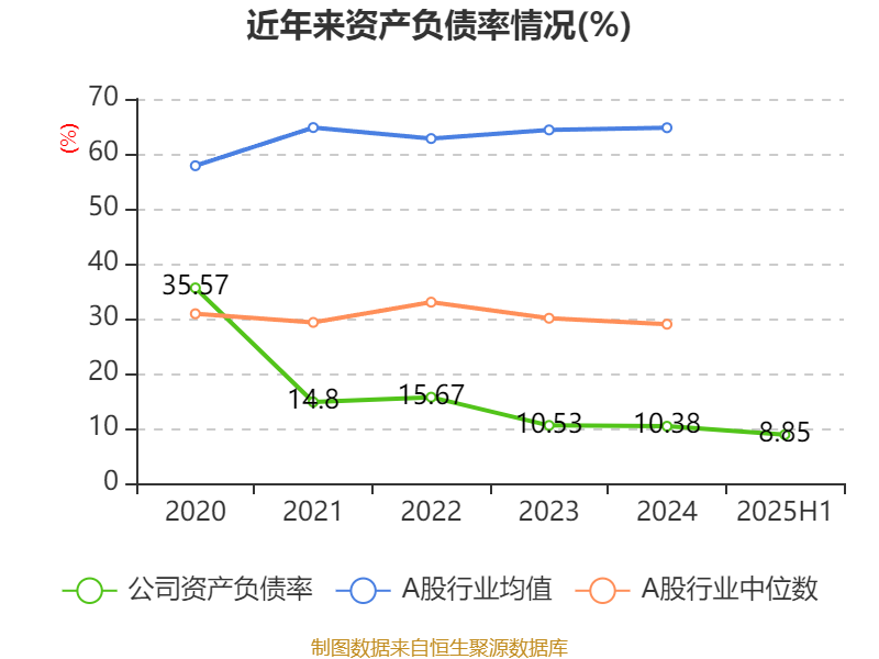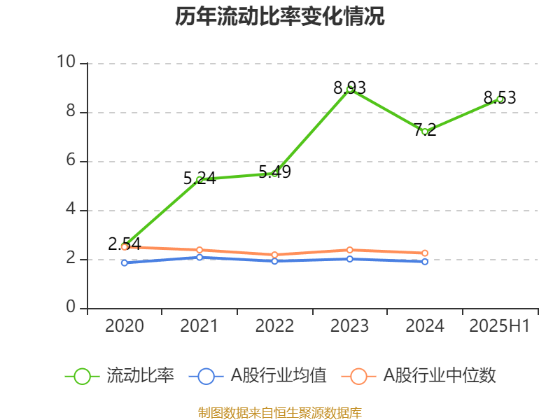 2025年上半年,公司流动比率为8.53,速动比率为7.8。