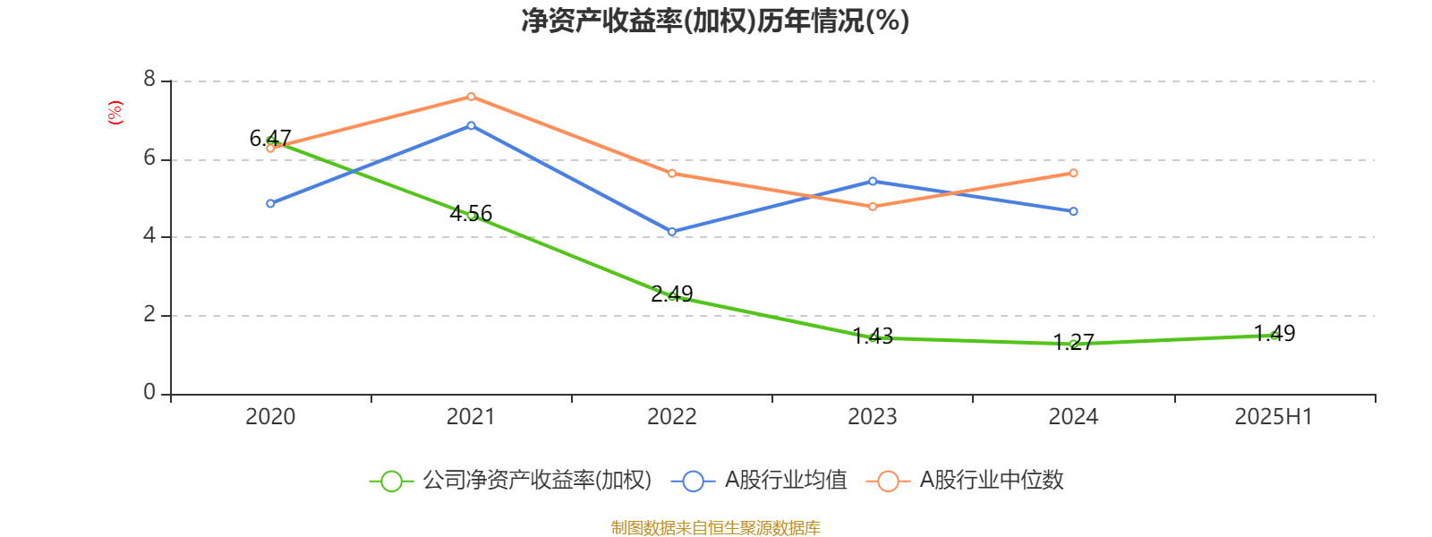 2025年上半年,公司平均净资产收益率为1.49%,较上年同期下降0.03个百分点。
