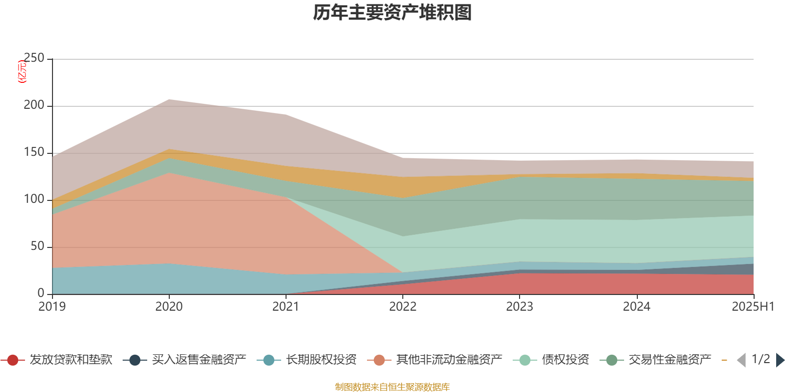 资产重大变化方面,截至2025年上半年,公司买入返售金融资产较上期末增加200.43%,占公司总资产比重上升5.59个百分点;交易性金融资产较上期末减少16.11%,占公司总资产比重下降4.58个百分点;交易性金融资产占公司总资产的2.15%,上期末为0;货币资金较上期末减少41.8%,占公司总资产比重下降1.7个百分点。
