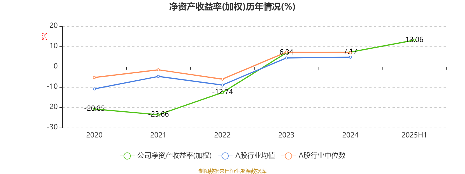 2025年上半年,公司平均净资产收益率为13.06%,较上年同期上升9.59个百分点。