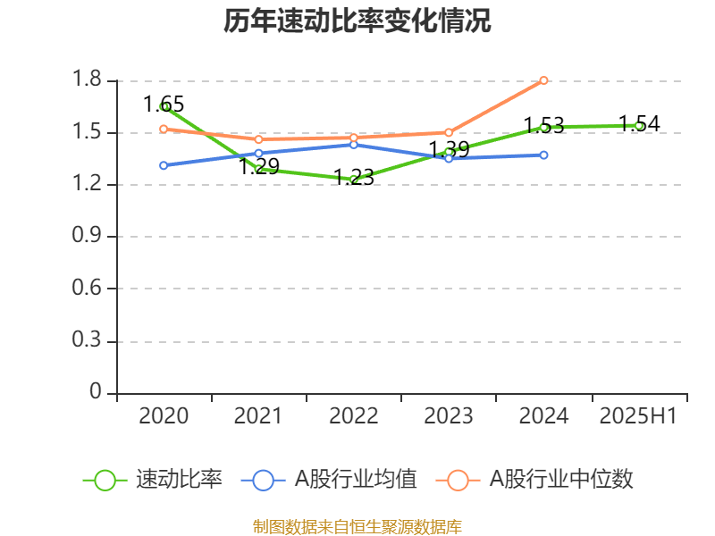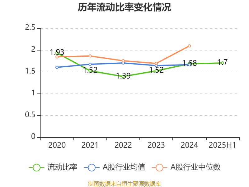 2025年上半年,公司流动比率为1.70,速动比率为1.54。