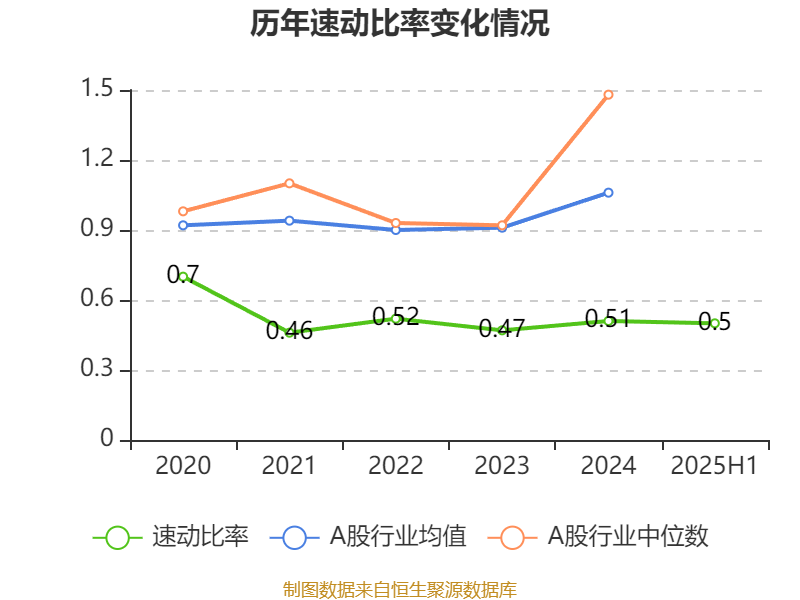 2025年上半年,公司流动比率为0.68,速动比率为0.5。