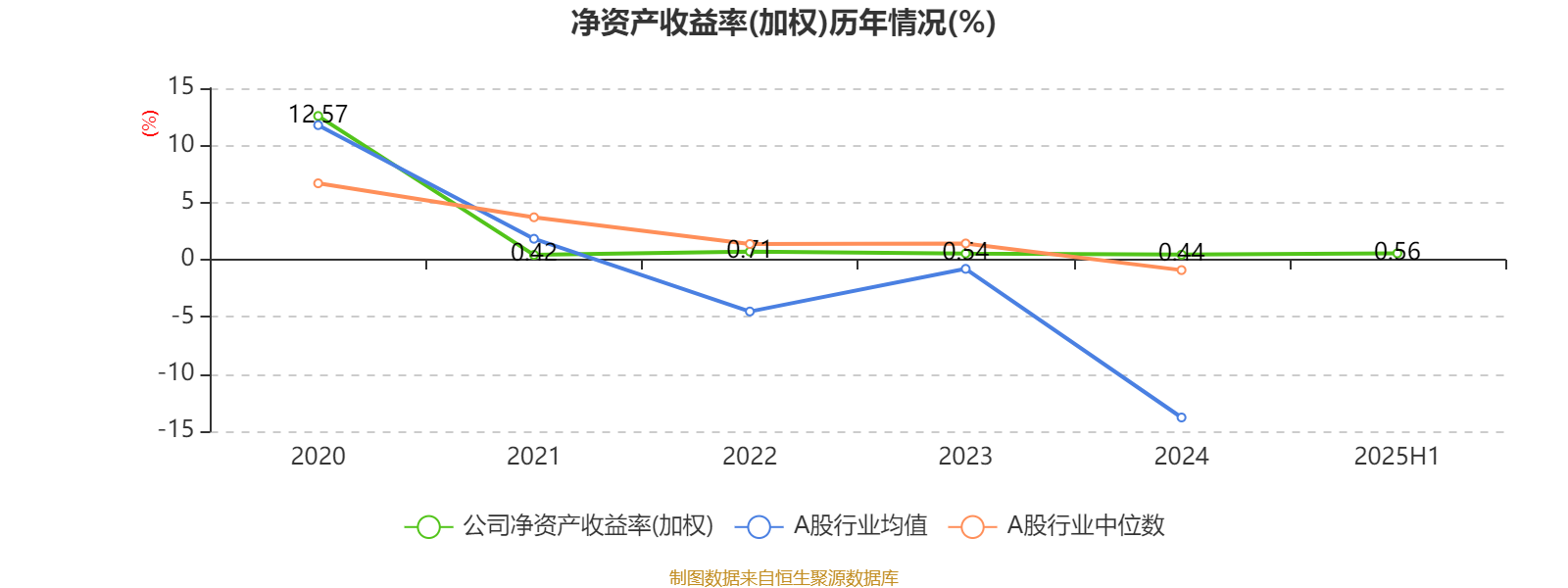 2025年上半年,公司平均净资产收益率为0.56%,较上年同期下降0.01个百分点。
