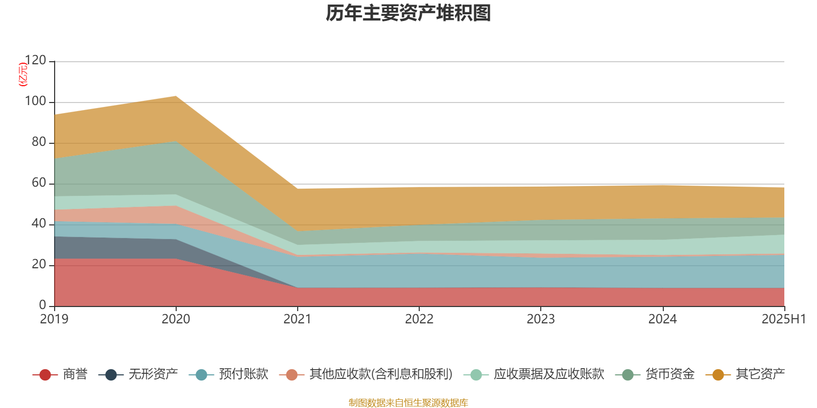 资产重大变化方面,截至2025年上半年,公司应收票据及应收账款较上期末增加23.31%,占公司总资产比重上升3.25个百分点;货币资金较上期末减少19.71%,占公司总资产比重下降3.22个百分点;预付账款较上期末增加5.79%,占公司总资产比重上升2.03个百分点;商誉较上期末没有变化,占公司总资产比重上升0.29个百分点。